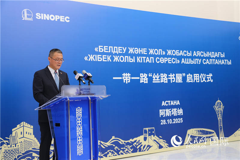 人民网阿斯塔纳10月28日电 (记者李强)10月28日恒瑞盈,由中国石油化工集团与哈萨克斯坦欧亚大学共同主办的“丝路书屋”启用仪式于哈萨克斯坦欧亚大学举行。中国驻哈萨克斯坦使馆公使衔参赞苏予、欧亚大学校长埃尔兰·西德科夫、中石化驻哈机构总代表曾凡礼出席仪式并致辞。