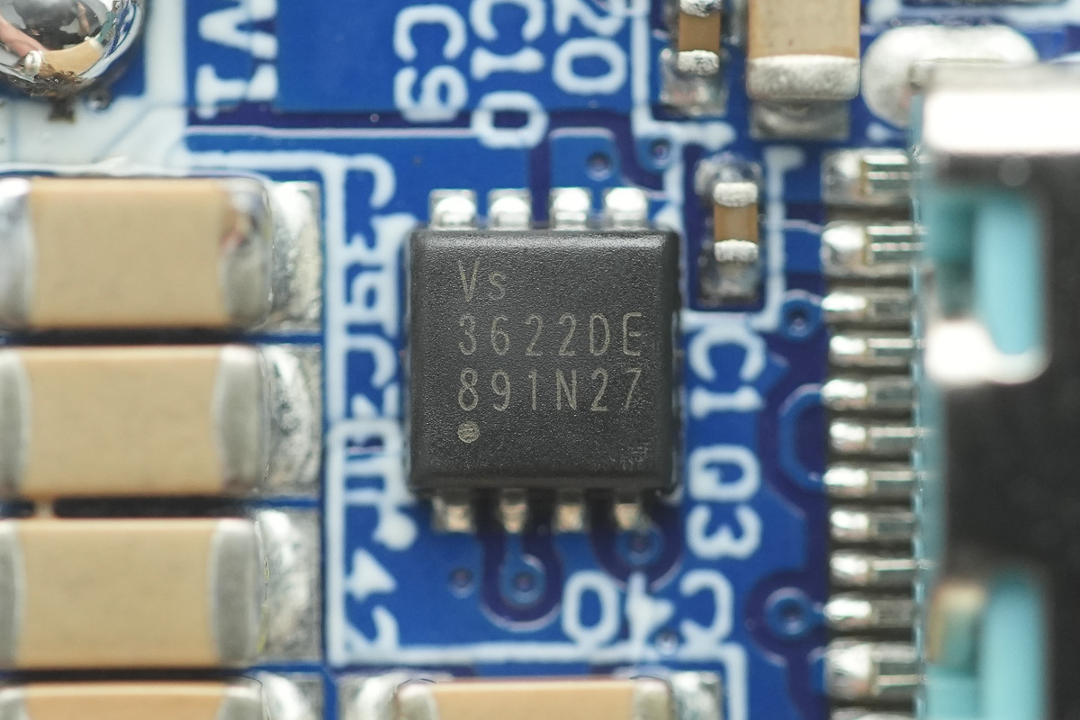 用于切换谐振电容的开关管来自Vergiga威兆,型号VS3622DE,双NMOS,导阻为10mΩ,耐压30V,电流35A,采用PDFN3333-8封装。