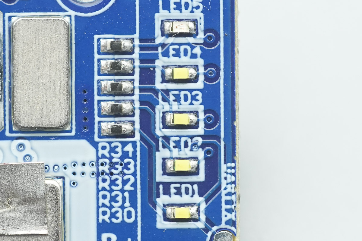 LED电量指示灯特写。