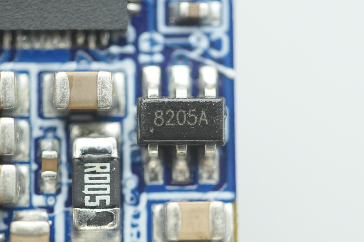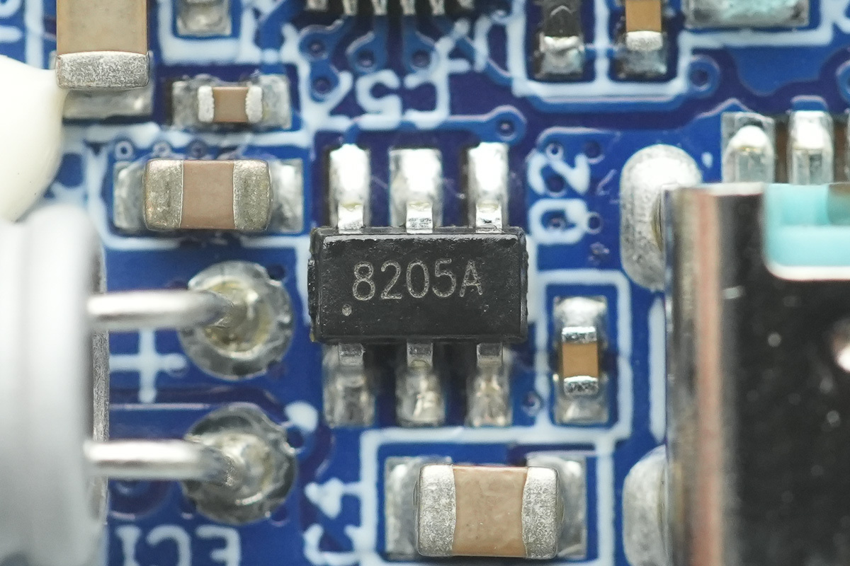 用于USB-C接口的VBUS开关管丝印8205A。
