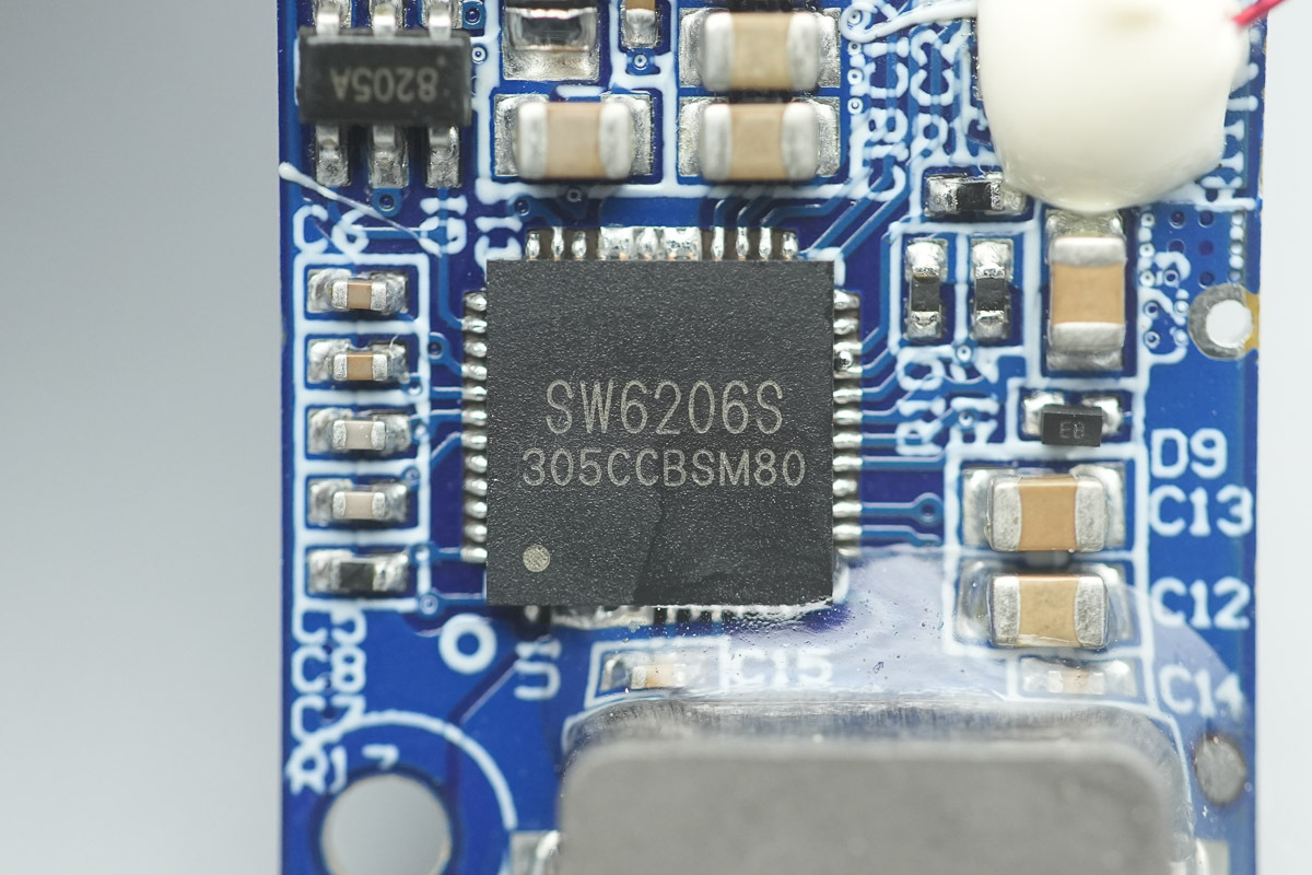 移动电源主控芯片采用智融SW6206S。这是一款高集成度的多协议双向快充移动电源专用多合一芯片,支持A+A+B+C+L口任意口快充。